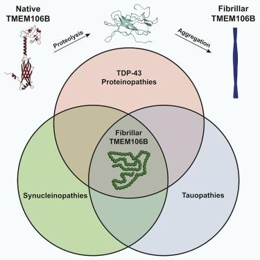 Cell誌のアブストラクトで、著者らは、「TMEM106Bの135アミノ酸C末端フラグメントからなる、これまで未解決だったアミロイド線維が、TDP-43、タウ、αシヌクレイン蛋白の異常凝集を特徴とする症例を含む、異なるヒト神経変性疾患に共通して見られることを明らかにした。TDP-43病変を伴う前頭側頭葉変性症(FTLD-TDP、n=8)、進行性核上性麻痺(PSP、n=2)、レビー小体型認知症(DLB、n=1)の死後ヒト脳組織から、低温電子顕微鏡と質量分析を併用してTMEM106Bフィブリルの構造を2.7 Åで解明することに成功した。ライソゾーム/エンドソームタンパク質であるTMEM106Bからなる豊富なアミロイド線維が、広範なヒトの衰弱性疾患と共通していることは、神経変性を開始または加速する可能性のある線維化経路が共有されていることを示している。」と述べている。