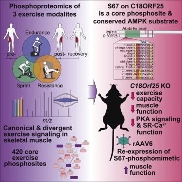 この論文は「3つの運動様式におけるリン酸化プロテオミクスにより、骨格筋機能を制御するAMPK基質として標準的なシグナル伝達とC18ORF25が同定された(Phosphoproteomics of Three Exercise Modalities Identifies Canonical Signaling and C18ORF25 As an AMPK Substrate Regulating Skeletal Muscle Function)」と題されている。