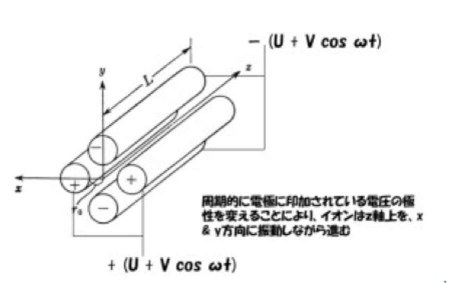 質量分析屋の髙橋です!今回から、質量分析計本体について、色々と書いてみたいと思います。現在最も普及している質量分析計は、GC/MS, LC/MS, その他全て合わせても、四重極質量分析計(quadrupole mass spectrometer, Q-MS)でしょう。Q-MSの動作原理は、様々な書籍で紹介されているのでご存知の方が多いと思いますが、簡単に解説します。
