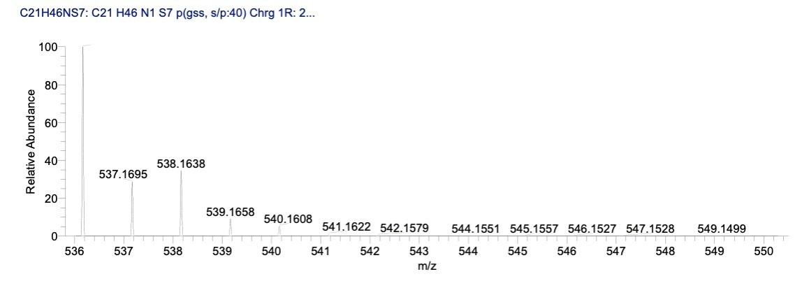 図3 C21H46NS7の同位体シミュレーションスペクトル