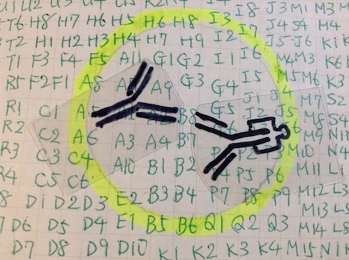 図1:黄色い円の中心に抗原"B8"があるとする。