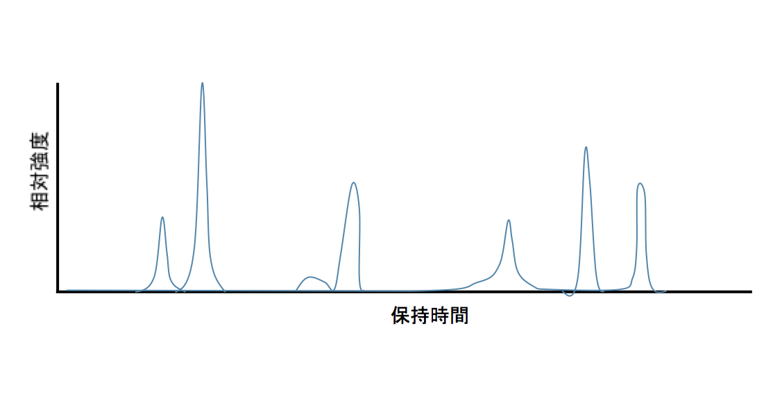 先ず、ブランク試料の必要性についてですが、試料以外の夾雑成分を試料成分と区別することに他なりません。上記の方法で、ある試料を調製し、LC/MS分析したら以下のTICクロマトグラムが得られたとします。