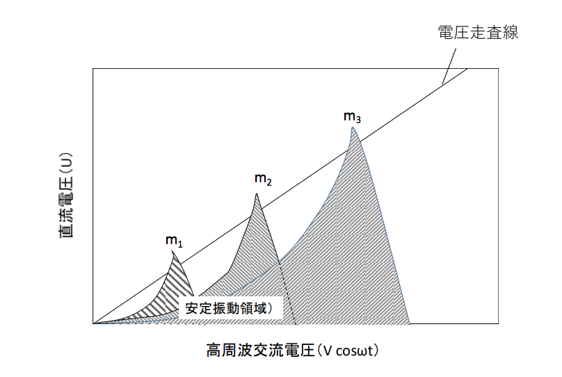 図1 Q-MSにおける電圧走査とイオンの安定振動領域